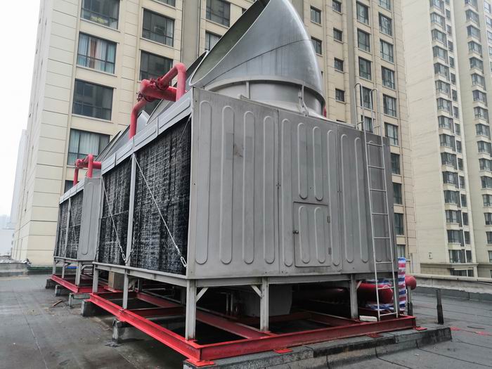 馬達、風(fēng)機、減速器(一般為皮帶減速速器),在冷卻塔頂部即為機械抽風(fēng)式冷卻塔,在冷卻塔底部即為機械鼓風(fēng)式冷卻塔。
